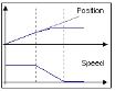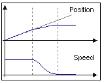 Engagement with fade-in function - not angle-synchronous - jerk limited - The position is ignored. There always remains a variation between reference and actual position. |