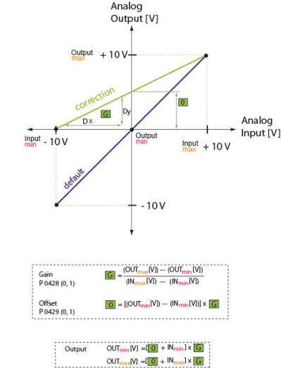 P 0428 ANA0/1 and the offset P 0429 ANA0/1 Gain.