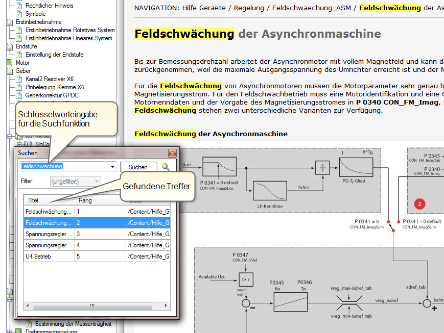 Help on specific topics is displayed by way of F1 Keyword input and search function