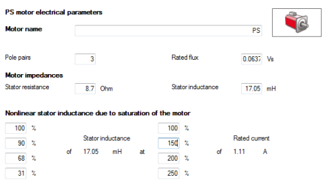 On the left are the inductance values, and on the right the values for the overload (> 100% of rated current).