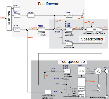 The closed-loop control is cascaded. The position, speed and current controllers are configured in sequence. The sequence of controller setup must always be observed in controller optimization.
